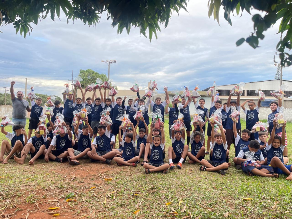 Os alunos do projeto Bom de Bola Bom na Escola, coordenado pela Polícia Militar de Iguatemi, celebraram uma Páscoa especial com a entrega de cestas. A ação ocorreu com o apoio da administração municipal, da Secretaria de Assistência Social, do Conselho Comunitário de Segurança e do Doce Mania.
