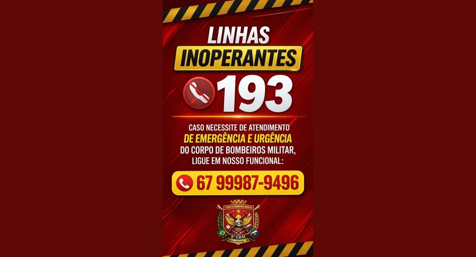 Corpo de Bombeiros oferece número alternativo para emergências em Amambai devido a