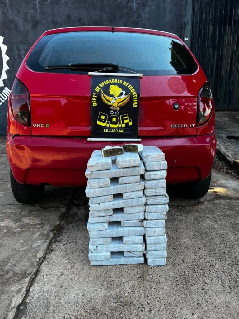 Na terça-feira (21), policiais do DOF (Departamento de Operações de Fronteira) realizaram a prisão de um homem de 30 anos em Coronel Sapucaia, onde foram apreendidos 64 quilos de maconha que estavam escondidos em um Chevrolet Celta. A abordagem ocorreu no trevo das rodovias MS-289 e MS-486, quando os policiais deram ordem de parada ao motorista que seguia para Amambai.