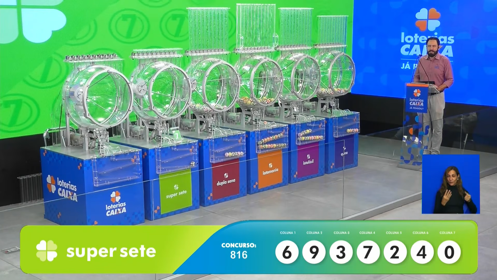 A Loteria da Caixa Econômica Federal realizou sorteios na noite de sexta-feira, 27, no Espaço da Sorte, em São Paulo. As modalidades sorteadas foram Dupla Sena, Lotofácil, Lotomania, Quina e Super Sete, somando um total de R$ 17.160.382,82 em prêmios para os apostadores.