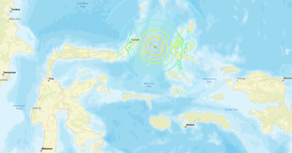 O tremor ocorreu a uma profundidade de 10 quilômetros. O Sistema de Alerta de Tsunami dos EUA disse que ondas perigosas de tsunami eram possíveis em um raio de 1.000 km do epicentro ao longo das costas da Indonésia, Filipinas e Malásia.